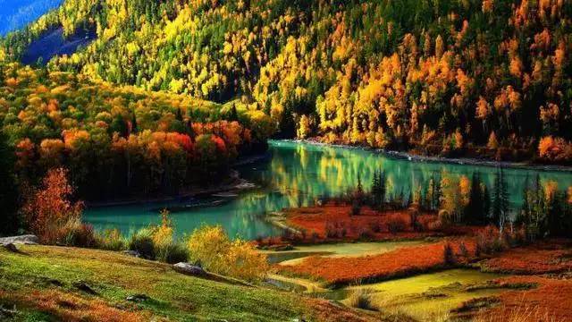 喀纳斯既有北国风光之雄浑,又有南国山水之娇秀,不同的植物群落色彩层次分明,每年9月尤是,金黄、殷红、墨绿各呈异彩,随着天气的变化每天都更换着不同的色调。