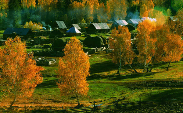 最先给喀纳斯涂抹上油彩的,是欧洲山杨当最早一场寒霜悄然落在喀纳斯的山间,欧洲山杨便害羞一般地为它涂抹上了淡淡的红晕。