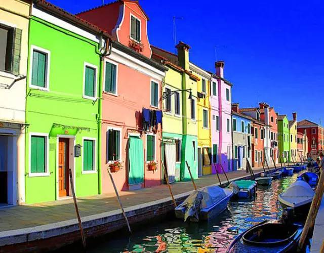 彩色岛位于意大利威尼斯的东北部,是个安详而宁静的渔港,这里规定每年都要粉刷房子,当地赋有创意的居民就按自己喜欢的颜色粉刷房子的墙壁,所以这里就多了一个名字:彩色岛。