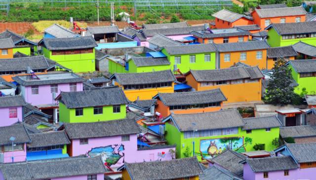 走入金龙村,一幢幢彩色的房子吸引了人们的目光,这里相邻的每户人家都用不同的颜色来粉刷自家的房子,这里虽然很想欧洲的小镇,但是这里还保留了中式建筑的特点,宛如一个梦幻般的世外桃源。