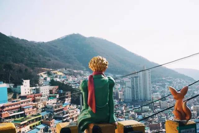 甘川文化村内最火爆的拍照点——小王子雕塑,这里有一只小狐狸一起陪伴小王子远眺风景你也可以上去和小王子一起俯瞰整个甘川洞。