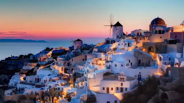 这里有世界上最美丽的落日,这里有童话般的白色建筑群,这里有圣洁的蓝顶教堂,这里的一切都美的像梦一样。