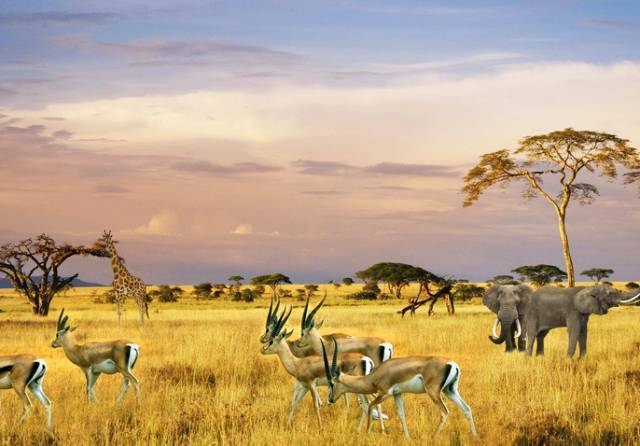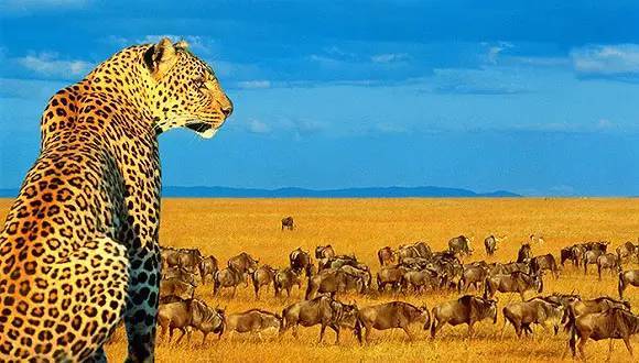 苍茫的非洲大草原,狮子、豹、大象、长颈鹿、斑马生生不息。每年6-9月,还会上演地球上最壮观的动物大迁徙场面。在这里你能体验到宁静祥和与朝气蓬勃的和谐共处。
