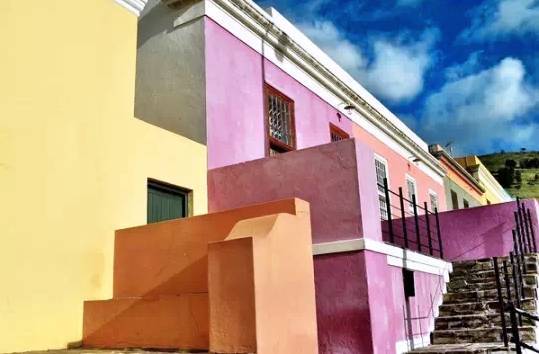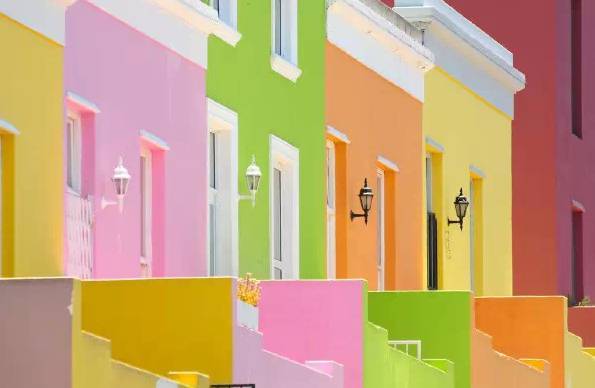 在南非开普敦市区内有一个马来波卡普区,房子外墙涂上了大胆明快的彩色,让这个地方看起来活泼且充满童趣。