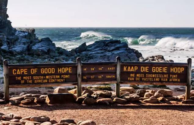 南纬34度21分25秒,东经18度28分26秒,这便是好望角。好望角是非洲大陆西南端的著名岬角,“好望角Cape of Good Hope”寓意“美好希望的海角”,也有太多人赋予她“天涯海角”的山盟誓言,所以在很多人眼中,到南非不到开普敦,等于没来过南非;到开普敦不到好望角,等于没到开普敦。