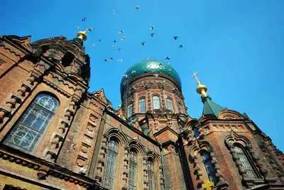哈尔滨的标志性建筑。教堂周围有一个不小的广场,许多鸽子在教堂聚集安家。游客可以买鸽子食,倒在手上,就会有鸽子飞过来落在你的胳膊上啄食。