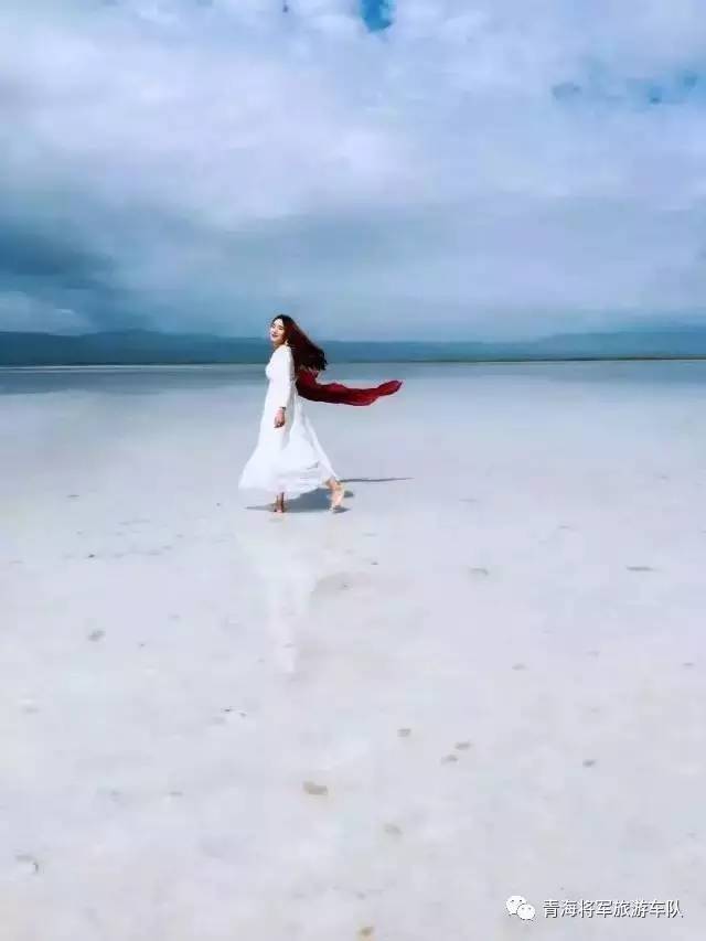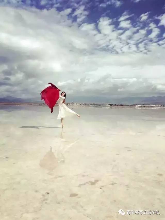 2、前往茶卡盐湖,如果天气好的话,建议准备一双凉鞋,以便下水拍照,爱美的女生可以选择色彩绚丽的长裙