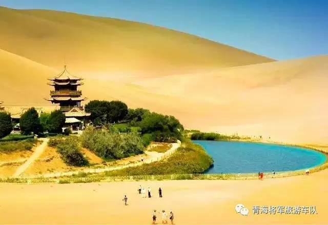 在这里一定不要错过骑骆驼,滑沙,去攀登进一步,退半步鸣沙山的,欣赏被誉为“银山四面沙环抱,一池清水绿漪涟”的天下沙漠第一泉月牙泉。傍晚的沙漠是最美的,光线是最柔和的。