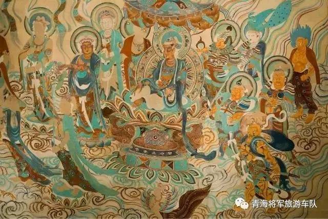 在那长长的栈道上,大大小小的石窟曲折相连,洞窟的四壁尽是与佛教有关的壁画和彩塑,肃穆端庄的佛影,飘舞灵动的飞天…庄严神秘,令人屏声敛息。