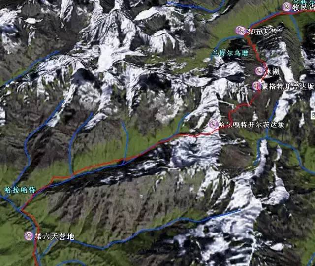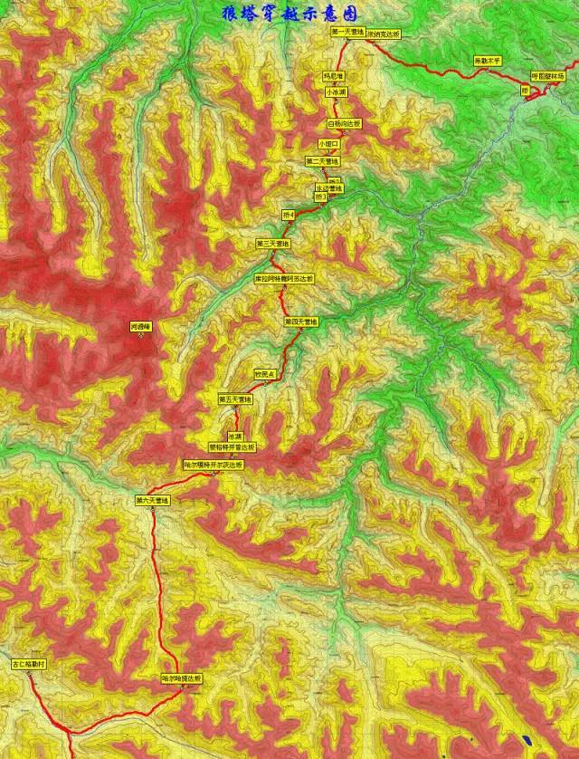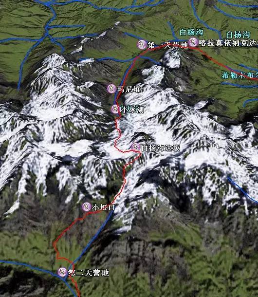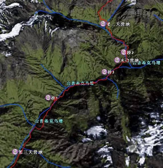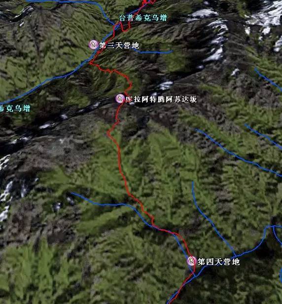 第四天参考路线图,注意该路线图中营地并非标准营地,标准营地当天应该走到。图:山友@大宝No.1”