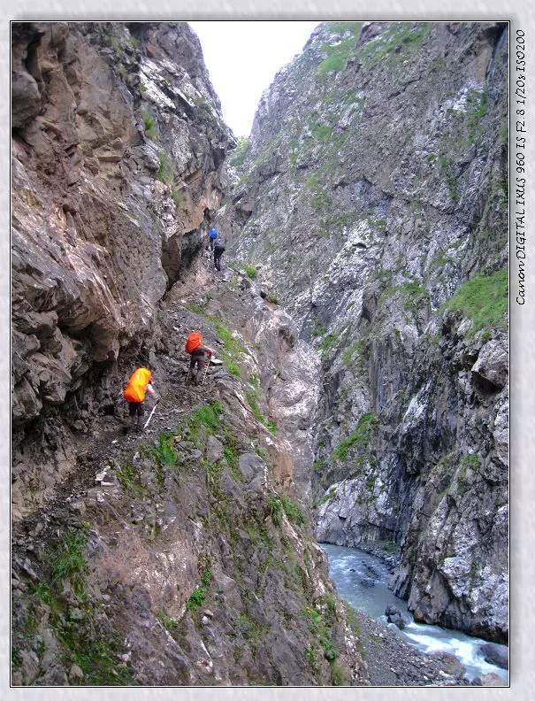 第三天--走空中栈道。这一段路程中,需要过五次河,加上栈道,比较费时,同时也是比较危险的一天。