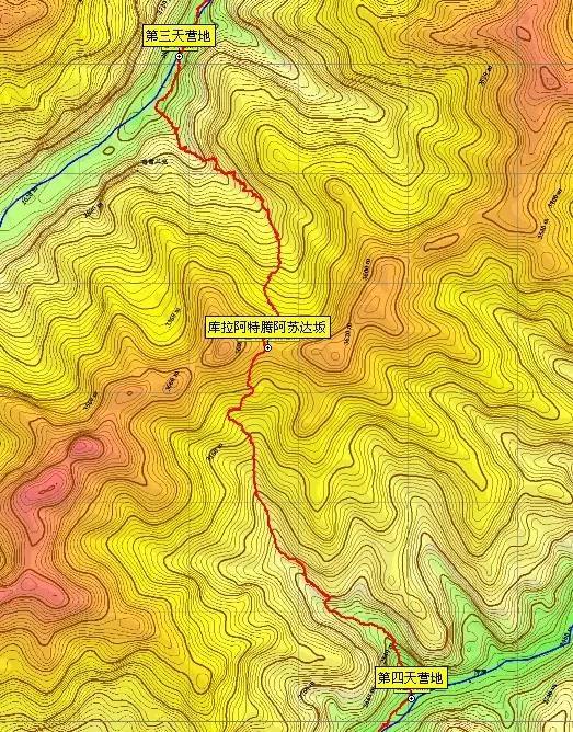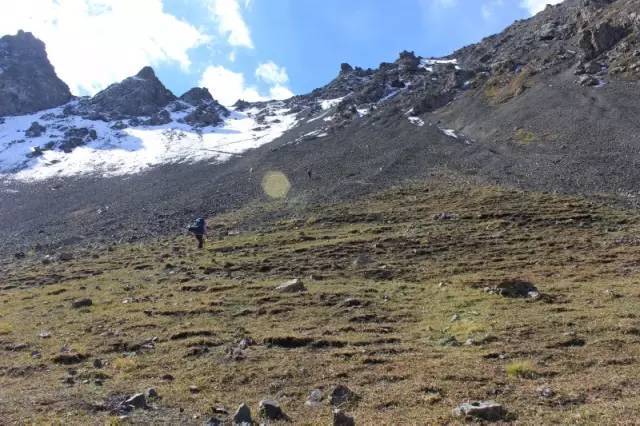 第四天:翻越库勒阿特藤达坂,徒步20公里,海拔上升1000米,下降1400米。