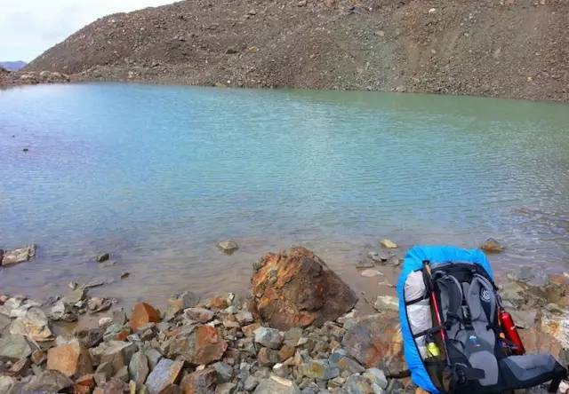 可沿小山包右手的马道,一路行进到达坂脚下,此处可以看到达坂西侧的冰川,还有上去的马道。达坂在左手方向,有一条很清晰的碎石马道翻越达坂,需注意开始路段很滑。途中会遇到小冰湖。