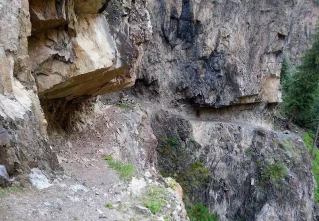 此处号称狼塔“三险”之一,是上个世纪七十年代呼图壁县为了利用河源峰地区的牧业资源而开凿的,以方便牧民夏季转场使用。因为年久失修,部分栈道还有塌方。通过时,务必要十分小心。