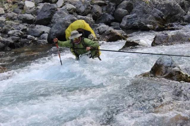 过河,使用绳索+扁带确保是一个明智之举。图:山友@大宝No.1