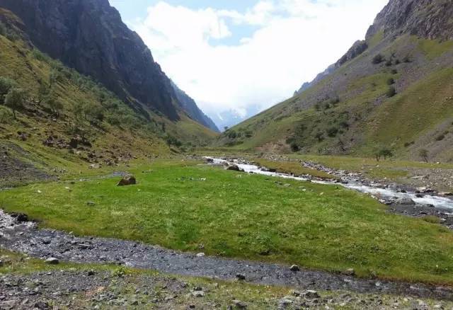 第二天--白杨沟--白杨沟达坂(3852M)--台普希克马河支流峡谷--第二天营地。从羊圈营地出发,沿白杨沟上行。大约3-5小时后,来到达坂前的一个小山包处,可以稍做休息调整。