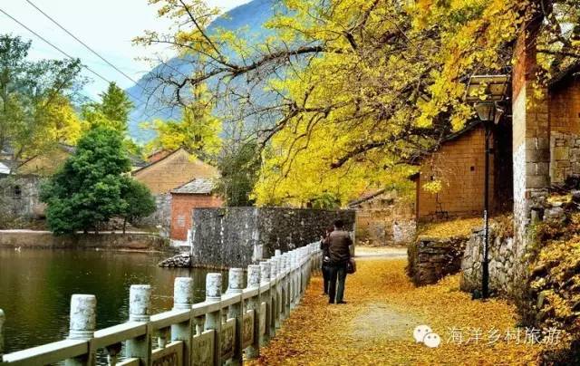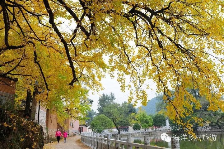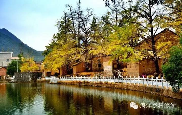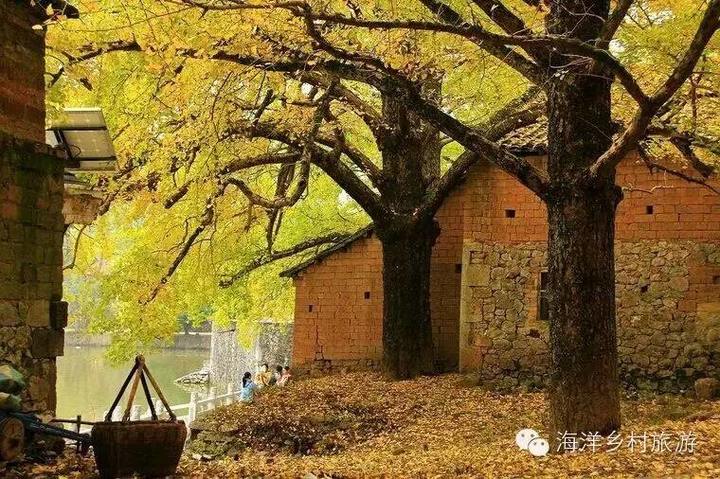 大塘边 海洋最美丽的银杏倒影村。村中有一个很大的水塘,水塘边的古银杏和古老的黄土砖房相得益彰。可以拍到非常有韵味的银杏倒影和银杏树下老墙上光影斑驳的美景,村后还另有一大片黄叶效果非常好的古银杏林,既是婚纱摄影基地,也是摄影家到海洋必去的好地方之一。