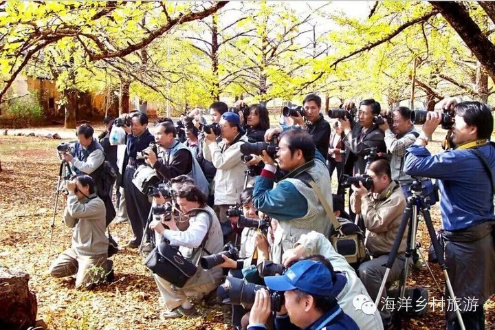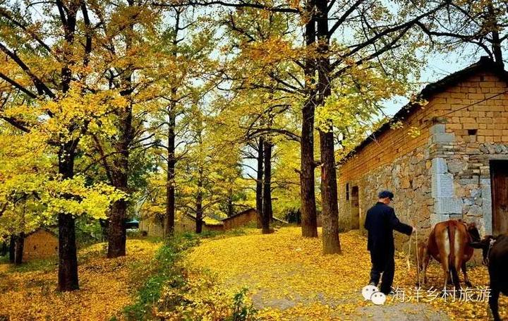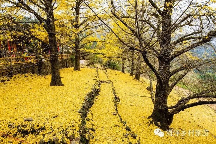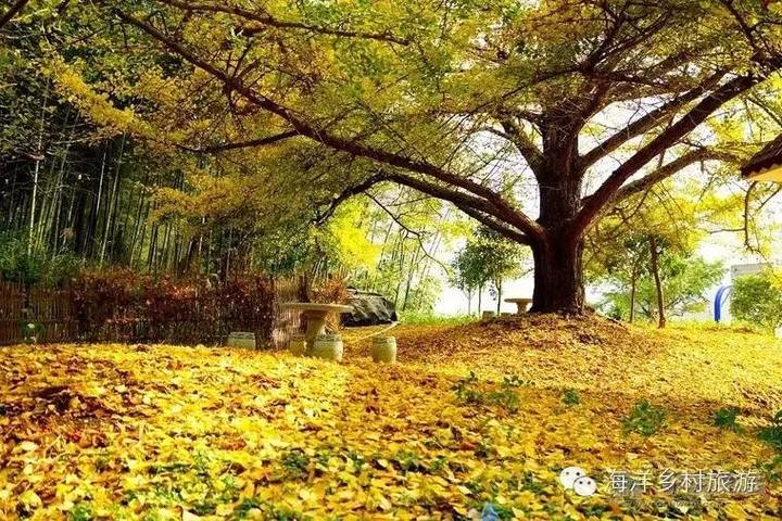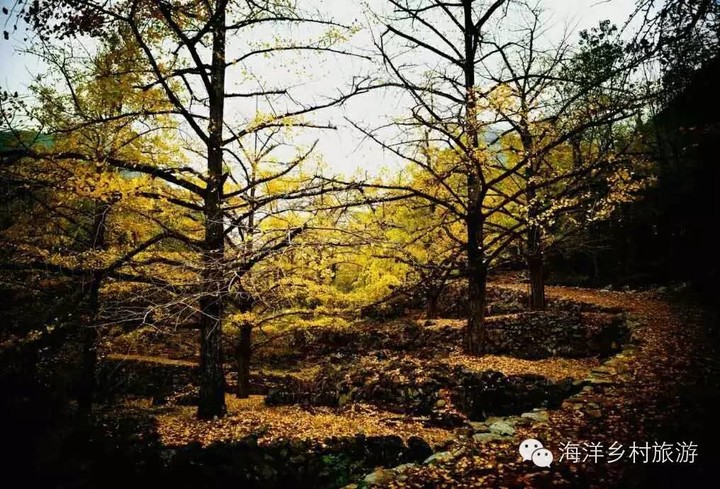 水牛厄村 海洋最有层次感和立体感的古银杏林。一个建在石头上的小村,一口碧蓝色的地下河水井形成四季不涸的小溪从村前流过。初次探访,见村不见林,让人大感疑惑,原来竟深藏于石山的半山腰之上,林中石径幽幽,任何一个角度都可以拍出画面很干净的摄影佳作。