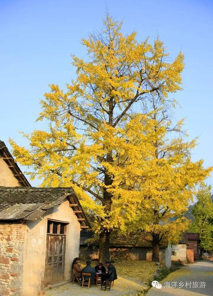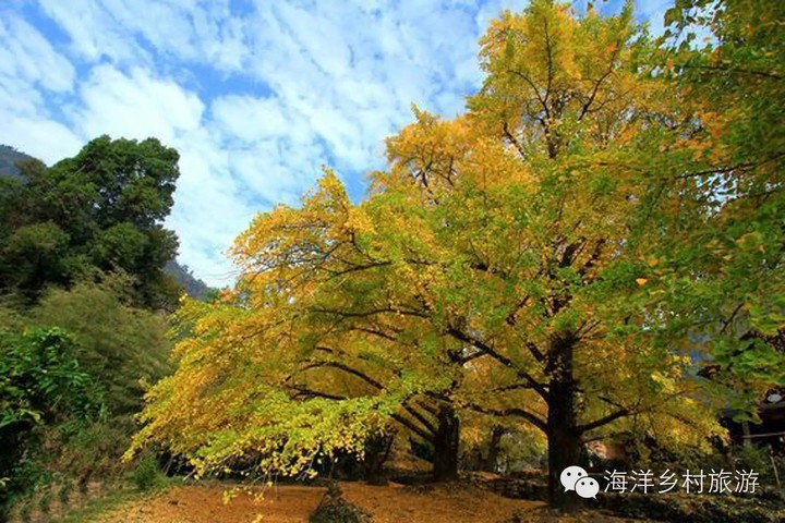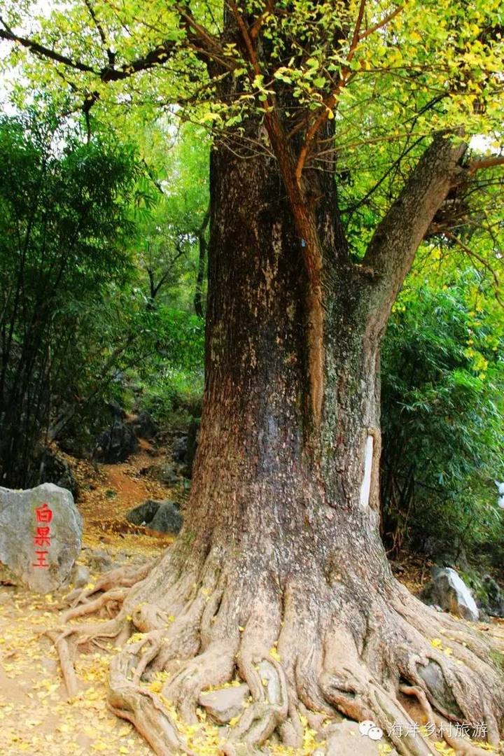 银杏俗称白果树,有"世界第一活化石"的美誉,海洋乡共有银杏近百万株,其中百年以上的银杏就有1.7万株以上,是世界上人均占有银杏最多的地方,被誉为"中国银杏第一乡"。