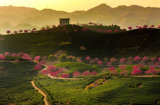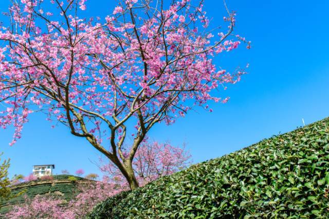 永福樱花园位于福建漳平市永福镇后盂村的茶园和李庄村的台缘山庄。这里不仅有漫山遍野的樱花还有成片的万亩茶山,呼吸着清新空气,感受着大自然的美,在最深的红尘里守着自己,守住最初的萌动和欣喜,这里被誉为“中国最美樱花圣地”。在茶园里种樱花,茶绿樱红,赏樱品茗,实在是雅事!