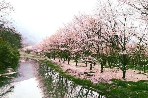这里是华东最大的樱花林之一,步入林间,沿着小路木桥、花树溪流,那满树满路、漫天飞舞的樱花,浅浅粉粉,似雪又似雨。