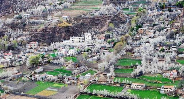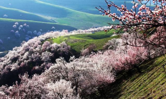 有杏花的地方很多,但美的像杏花沟这样大气又娇媚的,并不多。春天初绿的山腰沟谷之间,一树树一丛丛的粉色杏花蔓延开来,既有群花烂漫的大气磅礴,又有一枝独秀的娇媚动人。