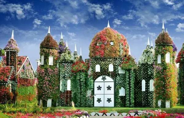 在这里透露一个秘密,为了打造这座神奇花园,土豪们从全球各地进口了4500万株(不要惊讶,就是这么多)鲜花,让18英亩的沙漠成为了花的海洋。