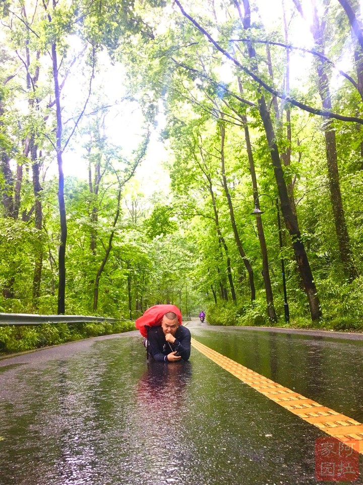 细雨连绵不停,阿拉走走停停,