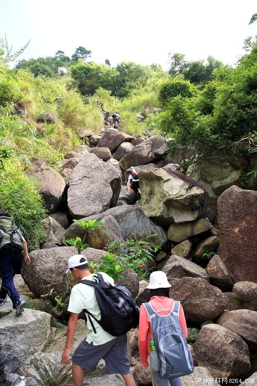 路面特点:山地往往由起伏不定的山丘或沟岭组成,间有小溪、山崖或林丛。路面往往较复杂,可能会出现前面的石板路、泥路、跳石、灌丛等,需要综合应用各种徒步穿越技巧。