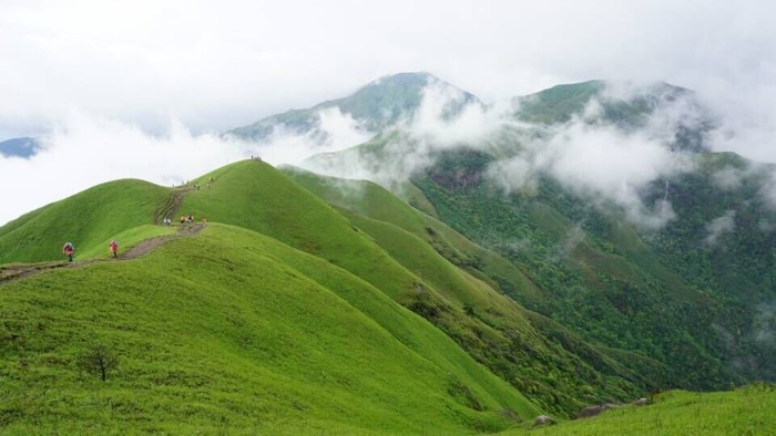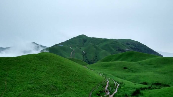武功山的高山草甸海拔之高,面积之广在世界同纬度名山中都是绝无仅有的。10万亩草甸绵绵于海拔1600多米的高山之巅,穿云入雾,春夏绿油油,秋季金灿灿,冬天白皑皑,游人无需远赴边陲,便可领略北国风光,真可谓“天上草原、人间仙境、北国风光、绿色家园”,被专家称为“奇山伴草甸,天下一绝。