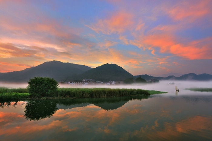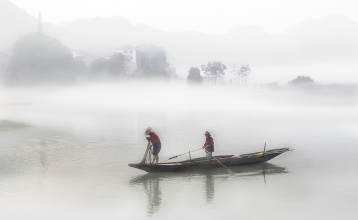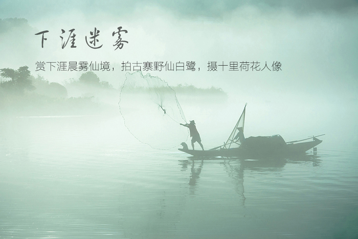 - 凌晨起来,抹黑出门,到了最为重点的【下涯迷雾】拍摄,但见江面白雾茫茫,似梦迷离,渔船、灯火、蓑衣、草滩、渔民,顿时在白雾里朦胧,美如仙境。一叶小舟,出没于飘渺迷境之中,撒网捕鱼,让我们定格一幅幅最美山水画卷。待天色大亮,晨雾散去,我们返回用早餐。适时集合出发前往【深澳古村】,大家拍摄古村风情的同时,我们也会安排模特进行创作。 - 午餐以后,返回杭州。