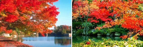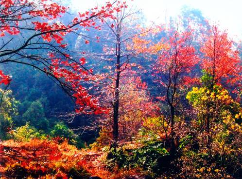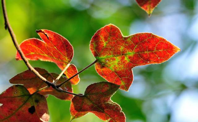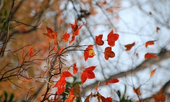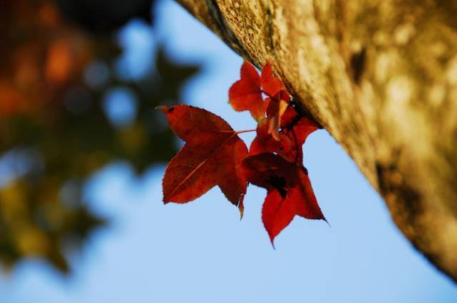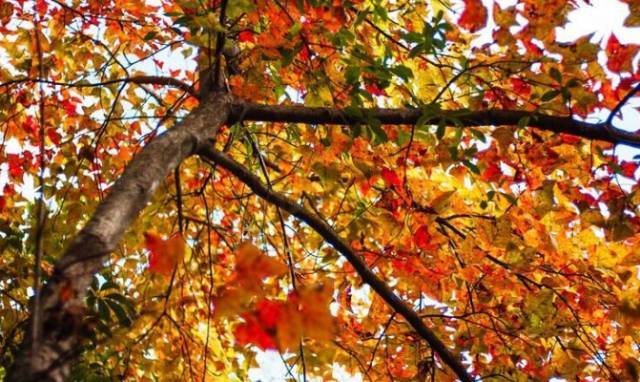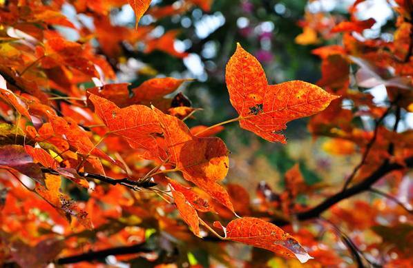 色彩从橙黄渐变成一树红焰,好不热闹。