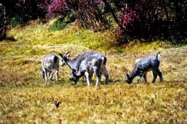 牛场周围是连绵的高山草甸,贡嘎河从牛场穿过,成群的牛羊在河边和山坡上悠闲的吃草,一派和谐景象。