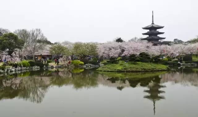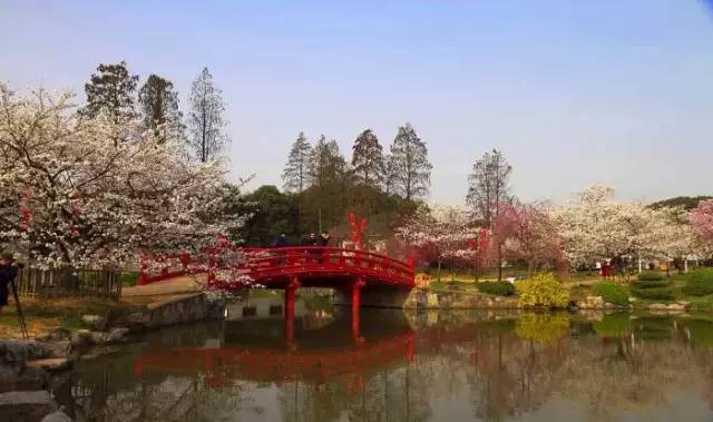 武汉东湖磨山樱园与日本青森县的弘前樱花园,美国的华盛顿州樱花园并称为世界三大樱花之都。磨山樱花园以仿日本建筑的五重塔为中心,配以日本园林式的湖塘,小岛,溪流,虹桥,鸟居,斗门,甚至管理间和售票处也是设计精细的仿日建筑。樱花开放期间,该园将定时播放日本民间小曲,并提供众多日本风味小吃,整个景区体现出浓郁的东瀛风情。