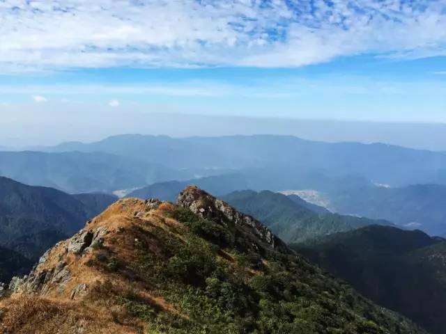 九连山脉山连山,站在九连山脉的最顶峰,江西赣州大地就在你脚下,广东粤东北连平就在你眼前。