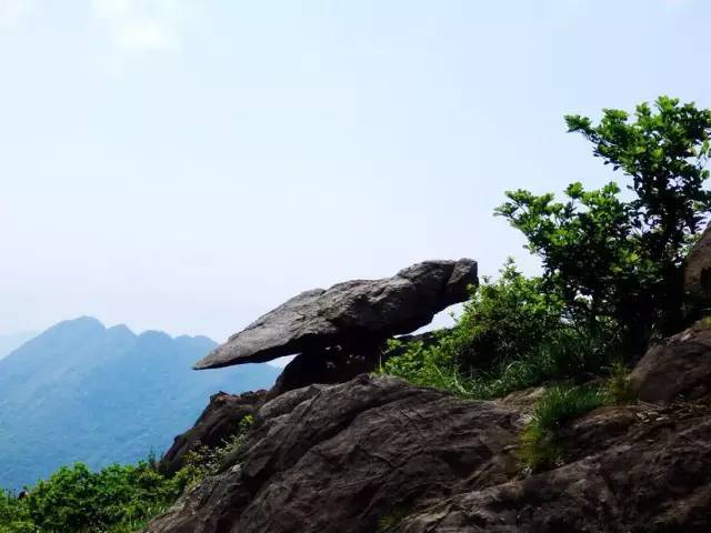 徒步途中,有一处造型奇特的石头,名曰“飞来石”,有“神鸟”之称