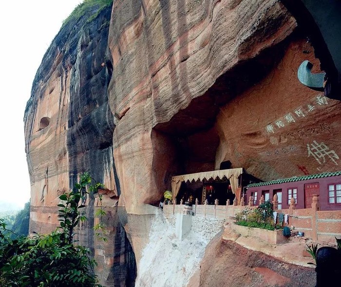 (4)锦石岩:建于半山腰,可俯瞰锦江遥看睡美人,雨季可看到瀑布;