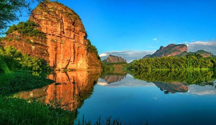 丹霞山( 中国红石公园),位于广东韶关市仁化县境内,是世界“丹霞地貌”命名地。由680多座顶平、身陡、麓缓的红色砂砾岩石构成,“色如渥丹,灿若明霞”,以赤壁丹崖为特色。