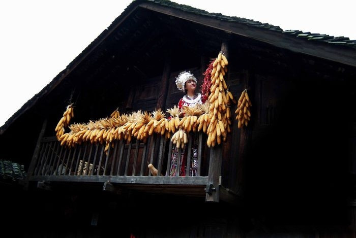 大簸箕苗寨,尚存于深闺的老宅子。和西江千户苗寨排山倒海的阵势不同,大簸箕苗寨的上百户人家聚集在仅有二十多亩地的小山包上,虽然看起来没那么震撼,但是民风也更加淳朴和原始。这里的吊脚楼还保持着最初的用处, 一层圈养牲畜,二层生活起居,三层储存粮食。