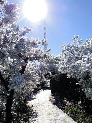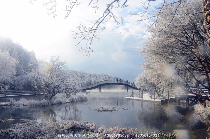 根据天气预报,本周福建温度极低,最低温度2度,高山地区零下2-3度,去年这个温度,九仙山就下雪了,雾凇非常漂亮,海拔每升高100米,气温下降0.6℃,九仙山海拔1658米,因此温度将会比海平面的温度低大约9.9℃左右。随着冷空气的到来,山顶温度将达到0℃以下,届时如果山顶湿度达到80%以上,有能起雾(也就是湿雾),便能形成雾凇奇观。