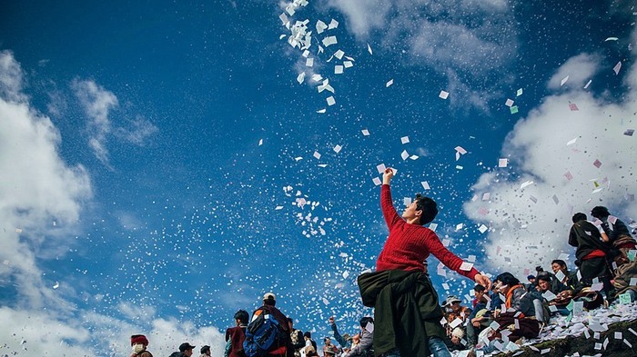 在藏地,各个地方都有撒“龙达”的习俗,抛撒的各色“龙达”在空中飞舞,再被清风带着飞向远方。因此,人们也称“龙达”为乘风飞腾的骏马,简称“风马”,撒龙达也被叫做放风马。藏族人用这种独特的方式祈祷安康,表达自己对佛的崇拜和敬仰。