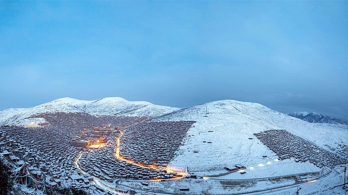 五明佛学院里,都是修行者。我们除了去山坡上拍摄全景和夜景,也会去了解那些外地和本地到此居住修行的人。我们或许不明白是什么支撑他们在这么艰苦的地方生活,他们自己会有自己的答案。