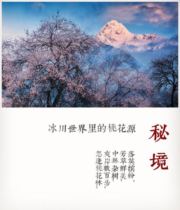●“桃花坞里桃花庵,桃花庵下桃花仙。桃花仙人种桃树,又折花枝当酒钱。”在雪山之下,桃花之间,摇首读着唐伯虎的这首《桃花庵歌》。或者回想往事记起"去年今日此门中,人面桃花相映红。"把掌心温存在一朵桃花的面孔上,我听到桃蕊心跳的律动,听到这个季节最动人的声音。