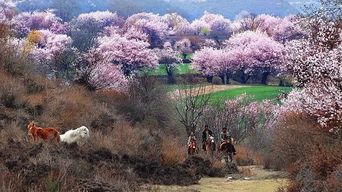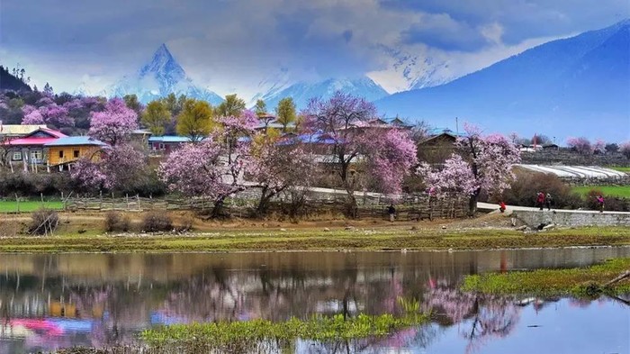 世人皆知林芝桃花冠绝天下,却难以尽知林芝桃花的精华尽在波密。嘎朗湖畔越是幽寂,桃花就开得越是热闹,岗乡草湖里水波温柔,桃花在深绿的背景里越是风致嫣然,如那村20公里道路两旁桃花盛放更放肆尽兴。
