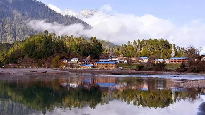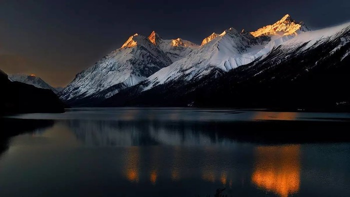 3、4月是看然乌湖最好的季节,天蓝水碧,森林环绕,冰川似天河倒悬,并映入湖面。日落时分湖畔村庄炊烟相伴,日出时天上、雪山、湖面一片璀璨金黄。