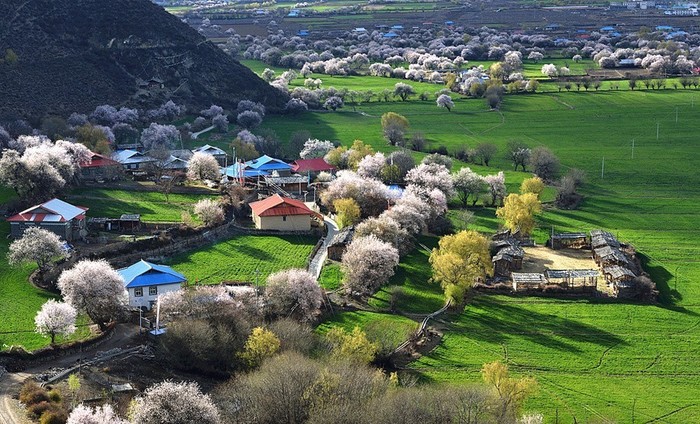 丹巴的梨花开在大渡河谷两边的山坡上,雪白一片,与嘉绒藏族天人合一的建筑既各自美丽,又相得益彰。色彩在雪白、嫩绿、鲜红中和谐转换,这片土地上最美的季节,也是最出大片的好地方。