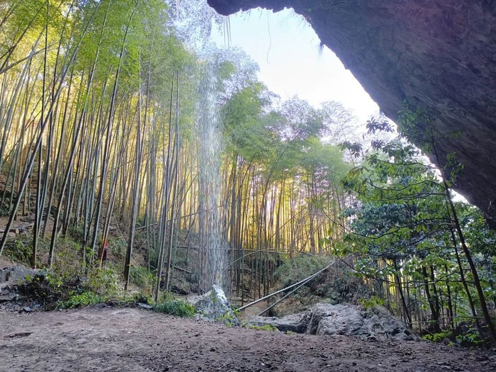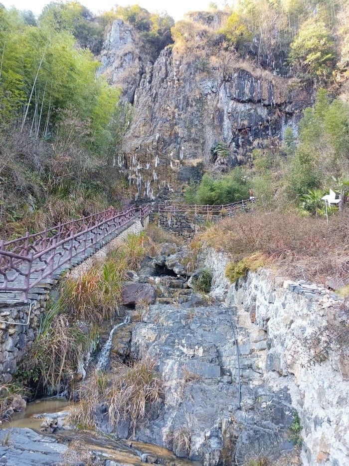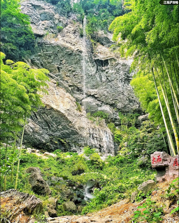 乌石铺就精古道,黄金山巅观云海。太平军驻大石屋,飞流悬瀑挂银丝。这四句话概况了章里古道的四大景点,乌石古道、海拔650米翠绿毛竹林中的黄金山、大石屋前自五十米高的悬崖上飞流而下的瀑布