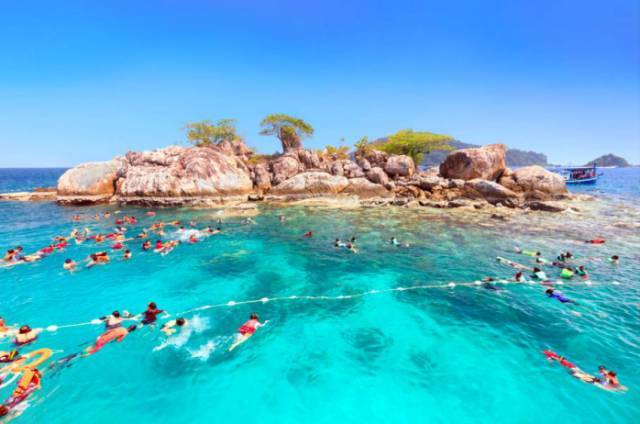 4)这里的玩法十分多样,环岛游、跳岛游、浮潜、游泳、皮划艇、晒日光浴、和大象嬉戏、到山林徒步探险、寻找野生动物......只要你愿意,天天都能过得充满惊喜和乐趣。 海水能见度很高,非常适合潜水,出海的大船会停泊在小岛附近,放下滑板,刺溜一下滑倒海水里,激起千层浪,或者各国比赛,看谁从三层甲板跳下来的姿势最酷炫。