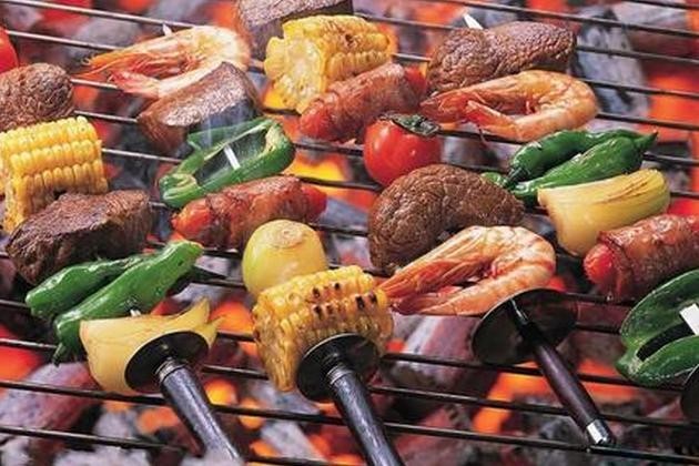 烧烤菜单:鸡腿1只,鸡翅1只,牛肉丸3个,猪肉丸3个,火腿2根,茄子或玉米1个,青椒2个,小馒头1个,方面包3片。(注:每人都有一份哦!十人一炉,不含酒水)