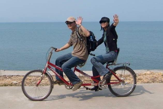 当双人自行车在美丽的沿海公路缓缓前行,海风飘动您的黑发,载着自己新识朋友,发出的是内心的喜悦,迎面而来的是发稍后是心仪的Ta,而眼前是蓝蓝的大海,心是如此的轻,所有生活中的繁琐都不见,唯有写在您脸上的幸福与满足——快乐有时真得很简单!